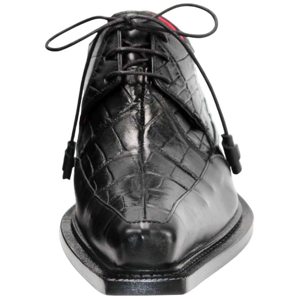 The Fennix Frank Derby Oxfords Shoes are a sophisticated fusion of luxurious alligator leather and supple calf-skin, offering a sleek, black finish that complements any formal attire. Crafted with Blake construction for streamlined durability, these shoes feature a comfortable leather lining and sole, ensuring both style and comfort. Packaged with an original box and dust bag, these Italian-made oxfords are designed for those who value elegance and quality in every detail.