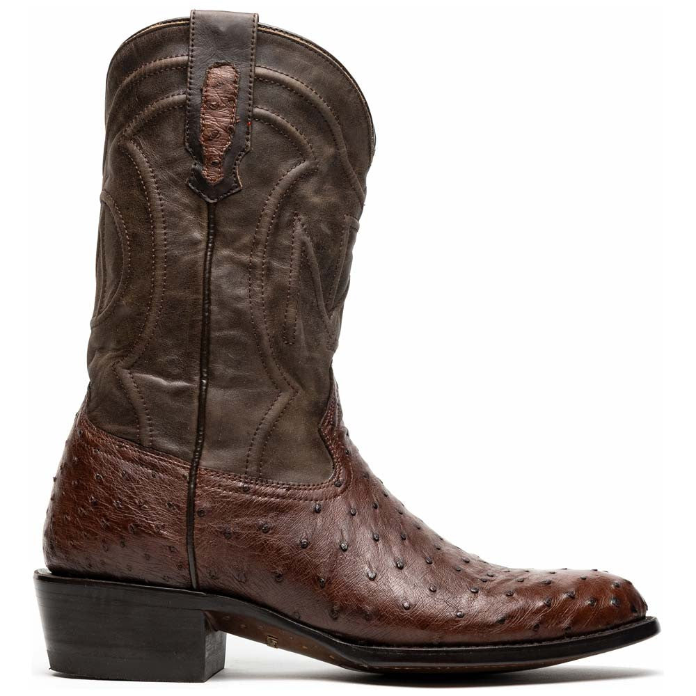 The SAVANNAH tabac full quill ostrich boot captures rugged refinement with a deep, earthy tone that speaks of timeless Western heritage. Crafted by Marco Di Milano Western artisans, its genuine full-quill ostrich vamp showcases a unique texture and natural sheen, perfectly balanced by a warm tabac-brown leather shaft adorned with fine stitch detailing. A comfortable round toe, signature red lining, and a resilient leather/TPU hybrid sole ensure both style and endurance. Designed for those who command attention with understated sophistication.