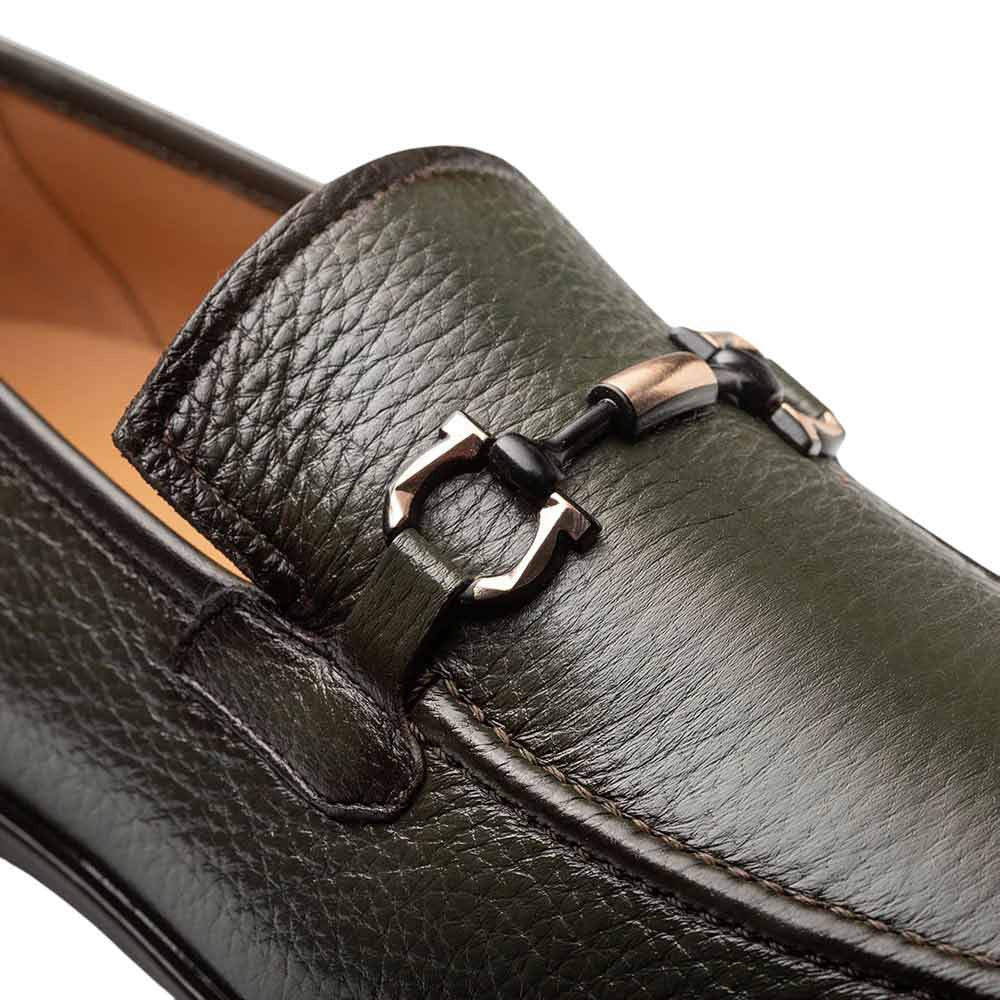 The Marinelli Olive Slip-On redefines casual luxury with its unique burnished olive deerskin, offering a striking alternative to traditional tones. Soft yet durable, the deerskin upper molds effortlessly to your stride while the ornament detail adds a refined accent. A contoured rubber dress sole provides flexibility and traction, complemented by a cushioned insole for lasting comfort. These Mezlan by Spain shoes showcase a rare blend of modern flair and timeless sophistication, perfect for those who appreciate understated individuality.
