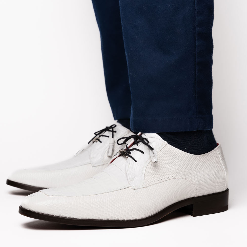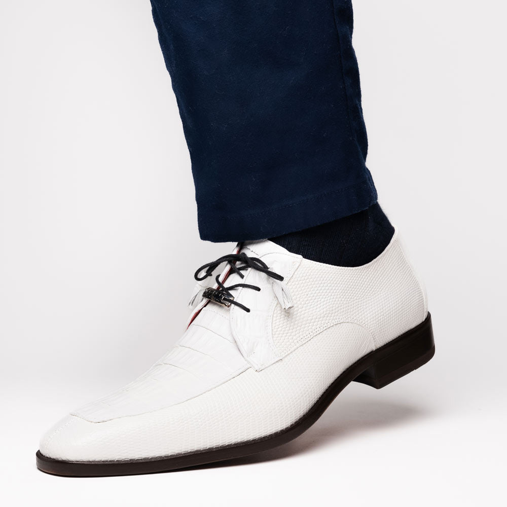 Stand out by styling the MERIDA white variant with tailored navy, beige, or stone-gray suits for contrast that commands attention. For a high-fashion look, try an all-white or tone-on-tone ensemble. These Marco Di Milano Shoes offer a clean yet textured aesthetic that pairs well with resort wear, summer events, or rooftop nights. Fans of Marco Di Milano's exotic shoes, bold alligator shoes, and rare caiman shoes will find the white MERIDA an instant elevation of their warm-weather wardrobe.