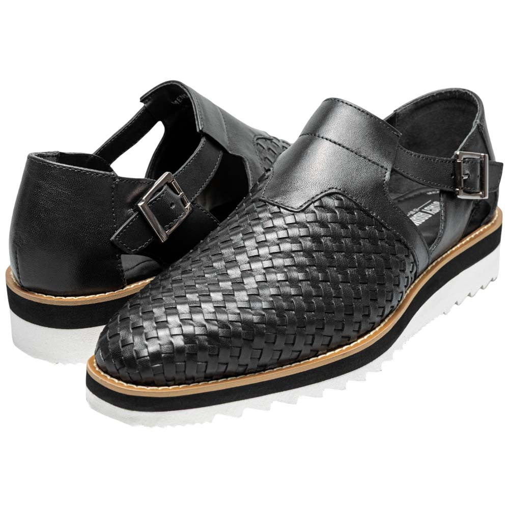 Pair with chinos, shorts, or rolled-up jeans for a relaxed, summer-ready look. The black woven leather adds versatility, making it easy to match with both casual and smart-casual outfits.