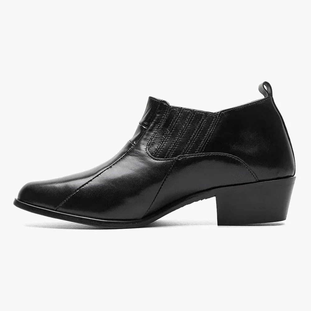 Introducing the Stacy Adams Sotaro Cuban Heel Boots in timeless black. Crafted from supple kidskin leather, this boot boasts a genuine leather sole for a touch of luxury. Combining modern aesthetics with comfort, enjoy the soft linings and a fully cushioned foot bed that accompany this sleek and versatile design.