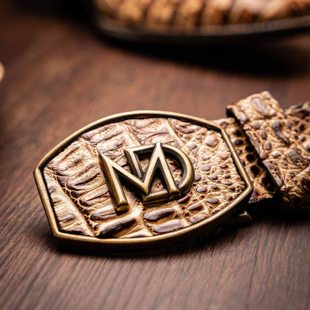 The TUCSON Stone Orix Cowboy Boot by Marco Di Milano Wester Boots Collection delivers a commanding mix of exotic texture and understated Western style. Crafted from genuine caiman belly skin, its warm stone orix hue highlights the natural belly-scale pattern with a subtle hand-polished sheen. The full-grain leather shaft features precise Western stitching, while the square toe silhouette adds structure and confidence. Inside, the signature red leather lining offers an elegant surprise. Completed with a hybrid leather-TPU sole, this boot blends comfort, durability, and luxury for the modern cowboy.